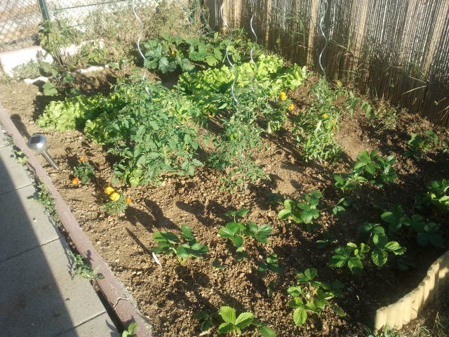 toute nouvelle main verte, j'ai emménagé en novembre dans une petite maison possédant une petite bande d'herbe sur 2 côtés... à la vue des beaux jours précoces, l'envie de jardiner pour la première fois naquit petit à petit... jusqu'à ce que je retourne un petit carré pour en faire un potager ! le lendemain, plusieurs plants étaient déjà là !! je suis une rapide, je sais ! mais en deux mois le potager était créé, la terrasse envahie !