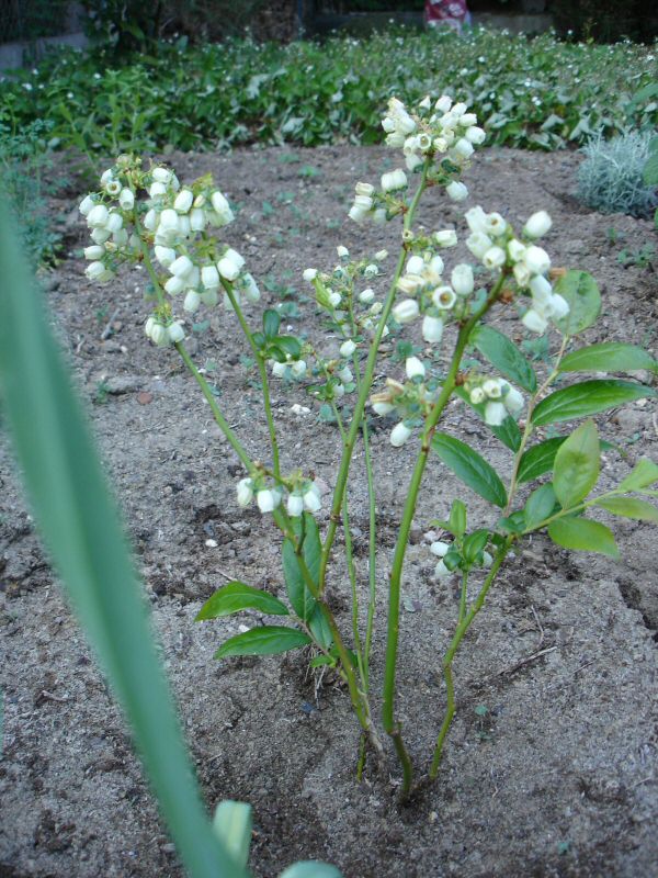 Ton myrtillier parait plus grand que le mien, plus feuillu aussi, peut-être est-il plus âgé ? Le mien fait 30-40 cm de haut. Regarde la différence entre les deux plants : le tien a des feuilles sur les branches fleuries, pas le mien.
