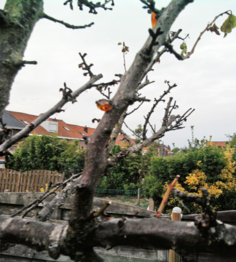 Et si tu veux replanter un autre arbre à la place, je pense que ce serait risqué un arbre fruitier à noyaux (pour éviter toute recontamination ; il peut s'agir d'une attaque bactérienne, d'un virus...).