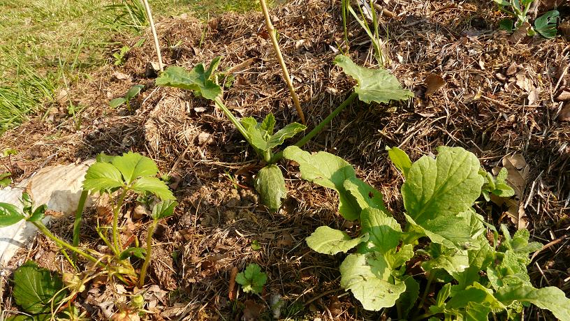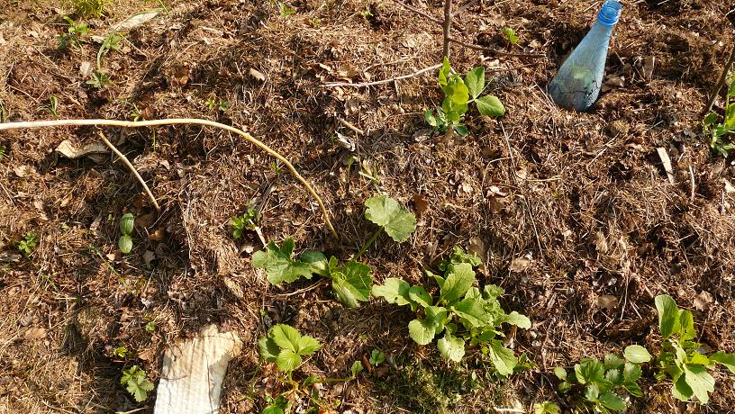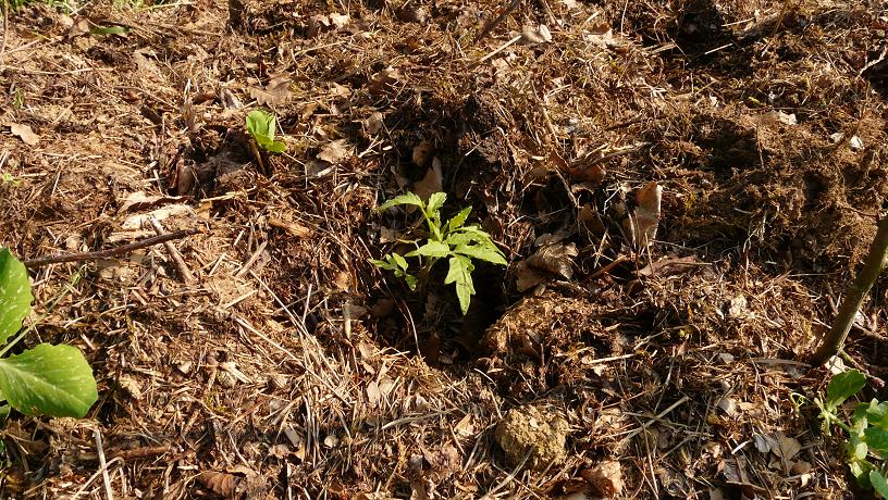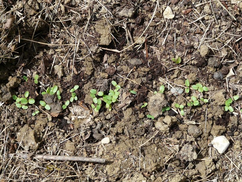 la première butte constituée pousse irrégulièrement, plus on va vers l'est mois c'est joli. J'ai semé des petits pois, courgettes, melons... et d'ouest en ouest c'est de moins en moins bien, au niveau de la germination et au niveau de la vigueur des plants. Je pense que c'est du à une différence de constitution des buttes mais je ne suis pas sure.