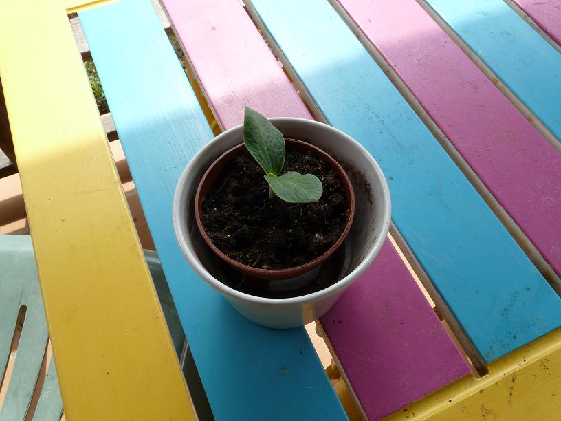 J'ai 1 concombre qui est sorti sur 3 mais à l'air bien, et quelques courgettes aussi qui ont 4 feuilles.