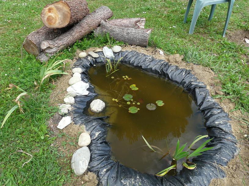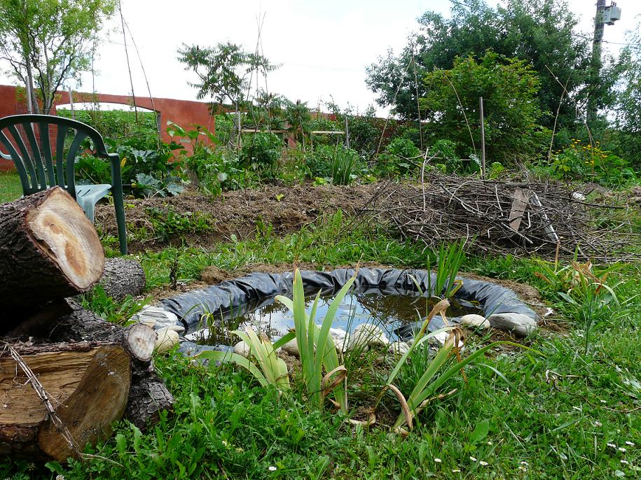 Chéri m'avait fait un trou à coté du potager pour installer un mini-bassin, ou plus exactement un petit point d'eau.