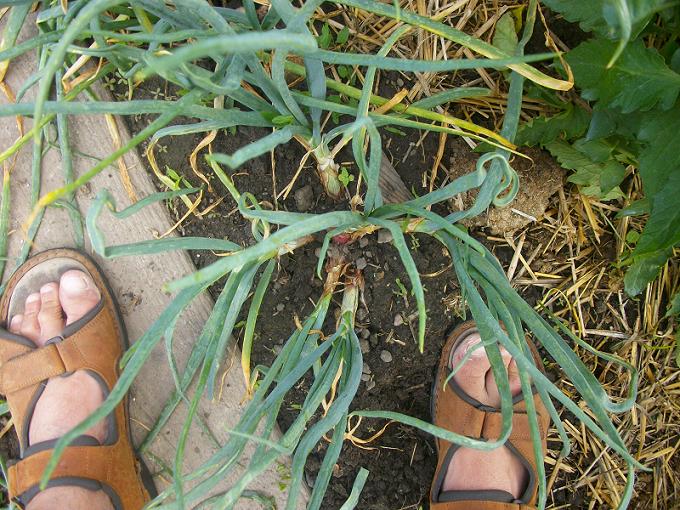 ensuite ,la lègende voudrait que l'on n'arrose jamais l'oignon. C faux, car il a besoin d'eau pour grossir. Avec la sécheresse j'ai donc , régulièrement arrosé. un peu.Et aussi apporter de la potasse. léger.