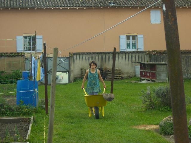 sa soeur lui a tamisé du compost: ensuite arrachage des adventices: après un rajout d'une pelletée de compost, mise en place à un autre emplacement des pommes de terre en seaux: inspection des framboisiers qui furent taillés au printemps, les abeilles butinent et les inflorescences promettent une excellente récolte: les tomates et restant d'aubergines sont en attente: @+