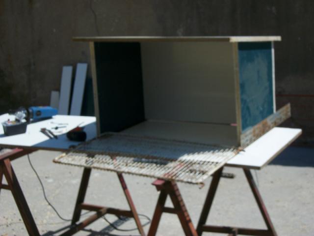 bleue d'artois: les binjtes dans les seaux, en compagnie de choux de bruxelles, poivrons, aubergines et côte de blettes! les nouveaux petist "pinpins" 7 au total! ils ont 3 semaines! et je leur fabrique une cage d'engraissement: