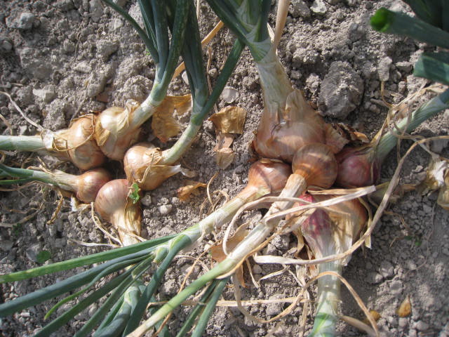 les oignons patates, que je n'ai pas encore arraché, j'attends que les tiges soient davantage déssèchées