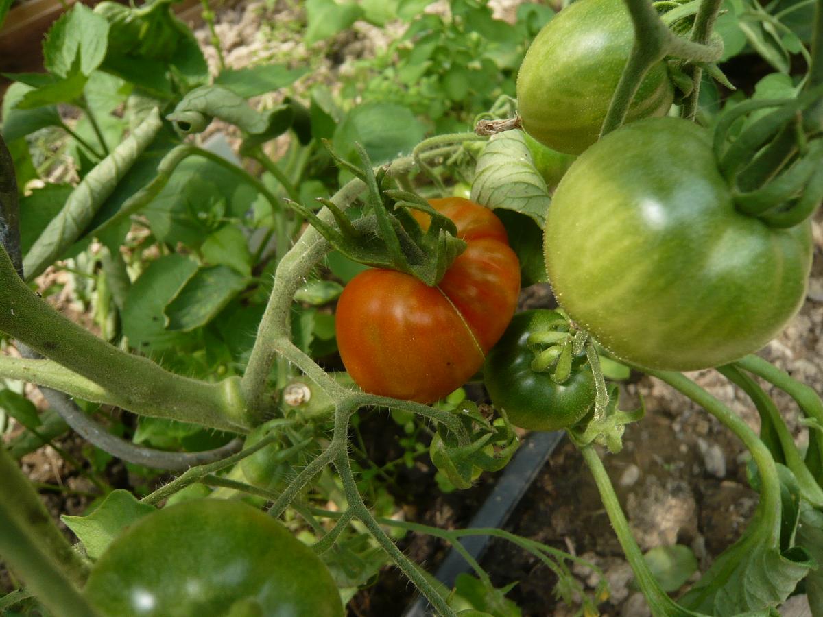 Cécile: les tomates bleues commencent à changer de couleur. Au tout début elles sont toute-vertes, puis avec le soleil elles deviennent noire sur le dessus, puis voilà que maintenant elles virent au violet foncé. Pour le moment ce sont les plus jolies à voir je trouve.