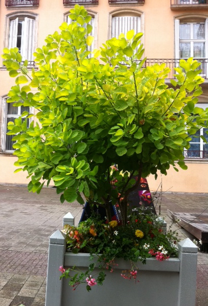 j'habite à Nancy, et il y a le long des rues de très beaux arbustes dans des bacs d'orangerie. Ils ont des feuilles rondes et lumineuses. Quelqu'un connaîtrait cette espèce?