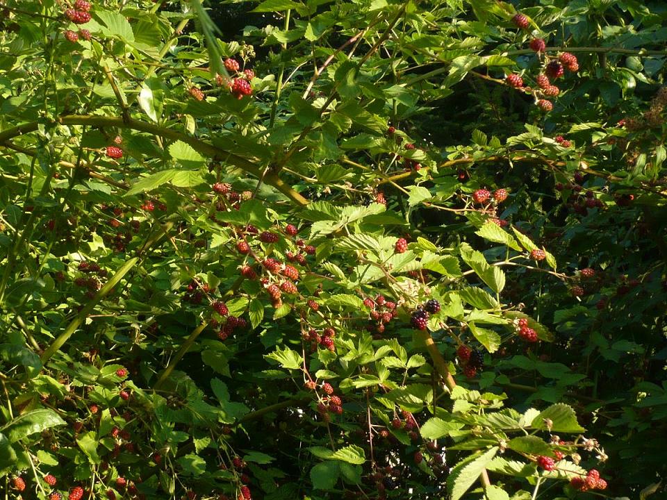 non pas encore les sauvages et puis c'est plein d'épines .Ce sont des mûres cultivées et cette année elles sont monstrueuses comme les framboises .Elles sont tellement vigoureuses qu'elles sont allées se percher dans un abricotier et je ne peux les atteindre ,je vais être obligé de prendre une échelle si je veux les cueillir.Je les récolte tous les deux jours et c'est chaque fois un peu plus du Kg .Il y a en tout 5 plants qui donnent des fruits en bonne quantité.