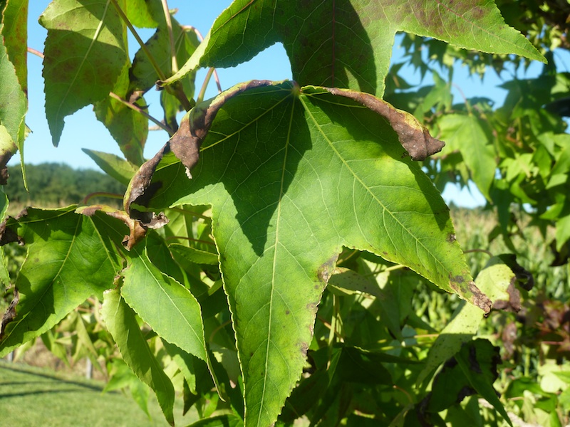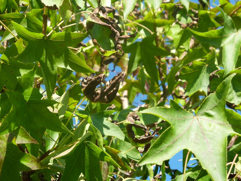 Puis aujourd'hui j'ai remarqué que certaines feuilles de mon liquidambar étaient elles aussi sèches :