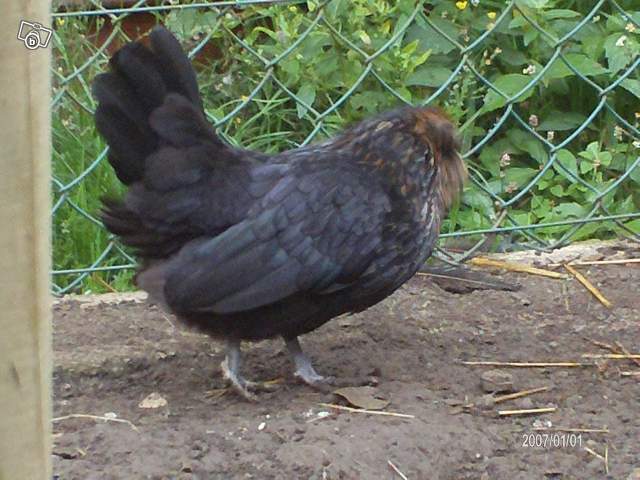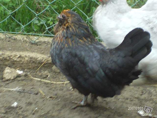 Mon voisin qui en a me dit qu'il s'agit d'une Marans noire cuivrée ou une Orpington noire.