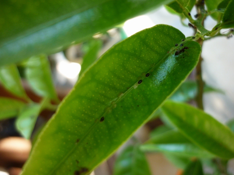 Alors depuis bientôt 1 mois des fourmis ont pris possession de mon jeune citronnier. Ce qui m'étonne, c'est qu'il n'y a aucun puceron! De plus depuis qu'elle sont apparues, des petits points noirs se sont formés sur les feuilles. (voir photos ci-contre)