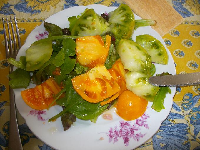 pour ce soir, mesclum , tomate vallin orange et tomate green giant :top: