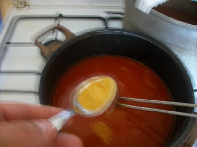 après une légère cuisson, sortir avec une écumoir les tomates, et les moulinerau-dessus d'un autre récipien.