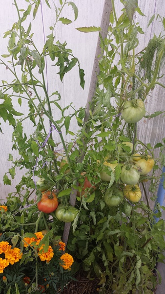 pour l'instant elles se refont une santé et pas mal de nouvelles tomates sont entrain de se former. reste plus qu'à espérer une belle arrière saison.