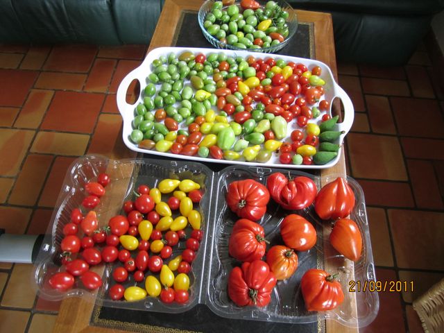 Pour clore le chapitre " tomates " chez nous voici la suite et fin de la récolte de papiris !. Pour un début il a bien travaillé !!
