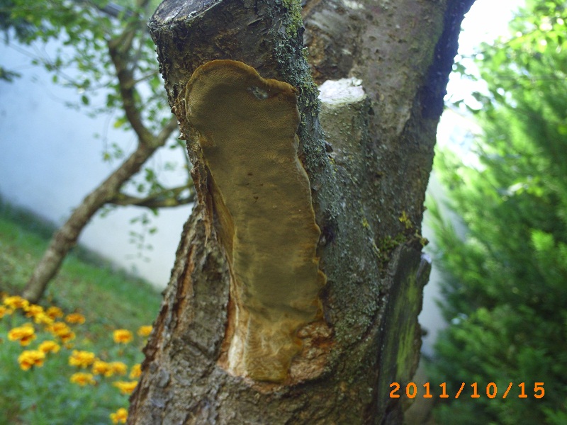 j'ai découvert un champignon sur le tronc de mon arbre fruitier.