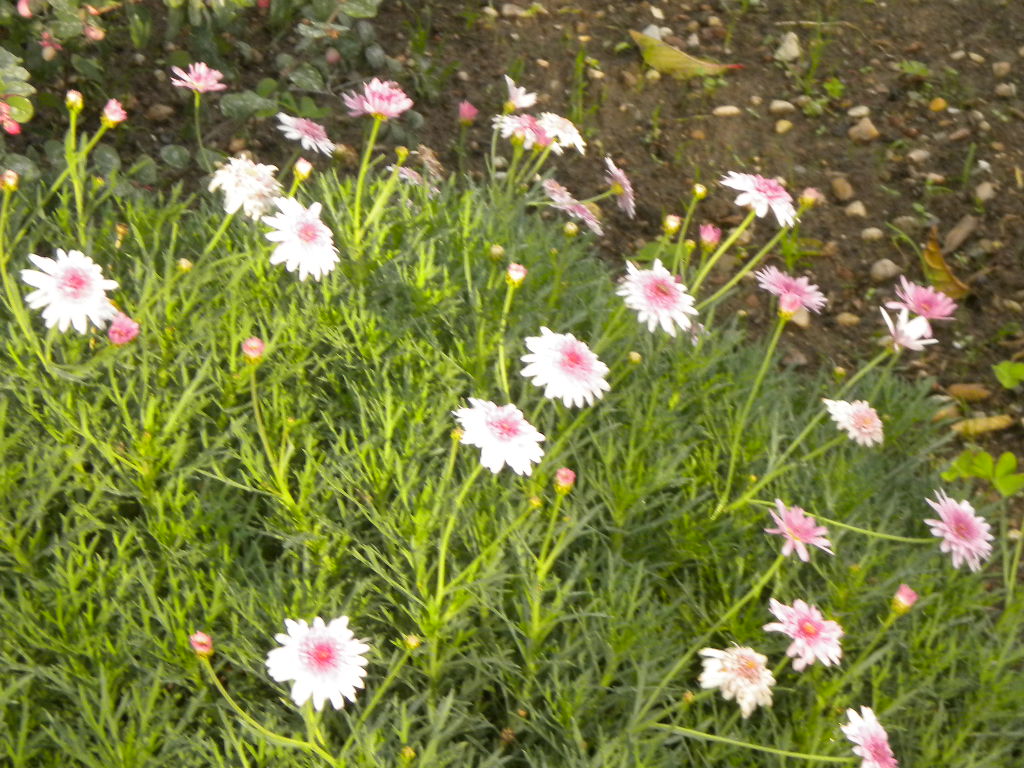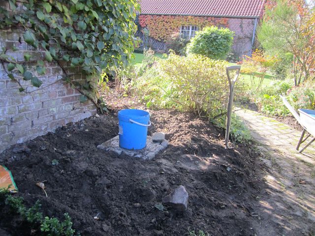 Bonjour ! Il a bien plu cette nuit cela aura, je l'espère , un peu nettoyé les pavés bien salis par les travaux : ciment etc..La terre se sera-t-elle un peu tassée et mon " talus descendu ??Il a eu une visite très bien repérée et pour cause le terreau tout " frais en a les marques !