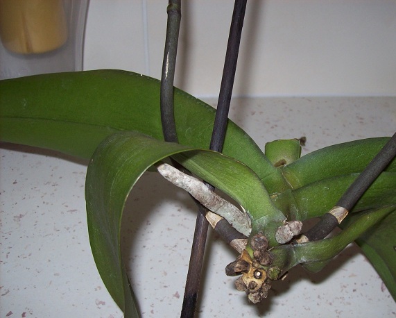 On m'a offert mi-janvier 2011 une orchidée phal. Elle est restée longtemps fleurie. Puis après j'ai coupé au-dessus du 4ème oeil. Tout allait super bien. Elle faisait de nouveaux bourgeons puis d'un seul coup plus rien.