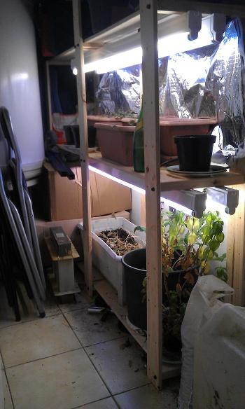 par contre j'ai profité de ce week end pour préparer mes semis: laitue, tomates et courge: j'ai mangé une courge ce week end en frite (c'est super bon) et il y avait de nombreuse graine de germer dedans que je me suis amusé à mettre en godet et j'ai mis tout ça dans mon cagibi transformé en serre avec néon...