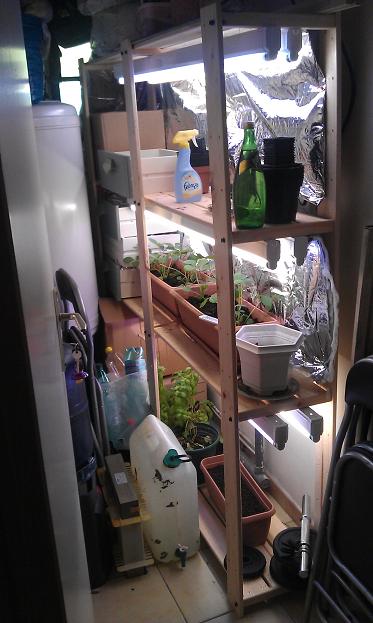 mon cagibi est dans mon appart' (vous pouvez voir un bout de cumuluse sur la photo). J'ai planté dire en pleine terre (faut que j'achète du terreau à semis et regarde un peu plus la lune pour faire un comparatif...)