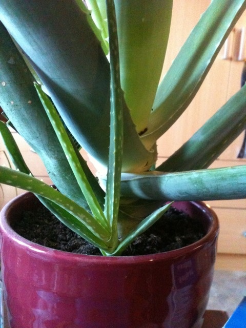 Mon aloé vera a fait un rejeton qui grandit assez vite et qui commence a être écrasé par les feuilles de sa mère. Le rejeton fait 17cm et sa mère +/- 35cm