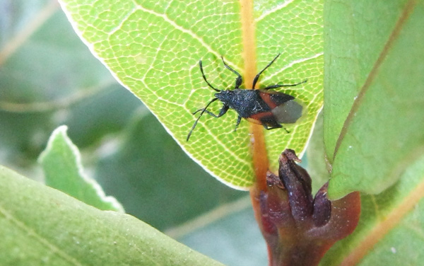 Mais que faisait-il à la cave ? il arrive qu'un laurier-sauce gèle mais c'est assez rare. Les taches rouges sur les feuilles montreraient un manque de nutriments ? Quant à la bestiole, je n'y reconnais pas une punaise mais je n'exclus pas celles-ci