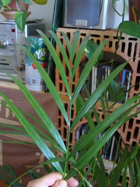 Je viens de faire l'acquisition d'une belle plante feuillue pour mon bureau. Après quelques recherches sur internet, il semblerait qu'il s'agisse d'une forme d'Areca. J'ai trouvé cette photo qui lui ressemble: