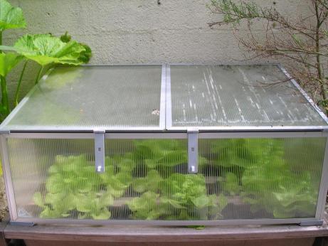 Les salades sont toujours jolies alors autant le manger au fur et a mesure, j'en sème toutes les semaines pour ne pas en manquer, on peut les voir en transparence sous la petite serre.