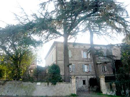 Et en plus grand : des cyprès florentins qui ont maintenant plus de 60 ans ont été plantés dont, de part et d'autre d'une terrasse, 2 et 2 ; ceux que j'appelle “Georges et Sarah” -du nom des personnes qui les ont fait planter- se portent très bien et se développent quoique serrés l'un contre l'autre ; Sarah est juste un peu plus petite ; de l'autre côté les deux plantés sur un rocher avec, sans doute au départ une couche de terre ajoutée, sont l'un quasiment mort et l'autre a encore quelques rameaux verts, mais de moins en moins : je diagnostique un manque d'alimentation et des racines qui n'ont pas pu aller bien profond.