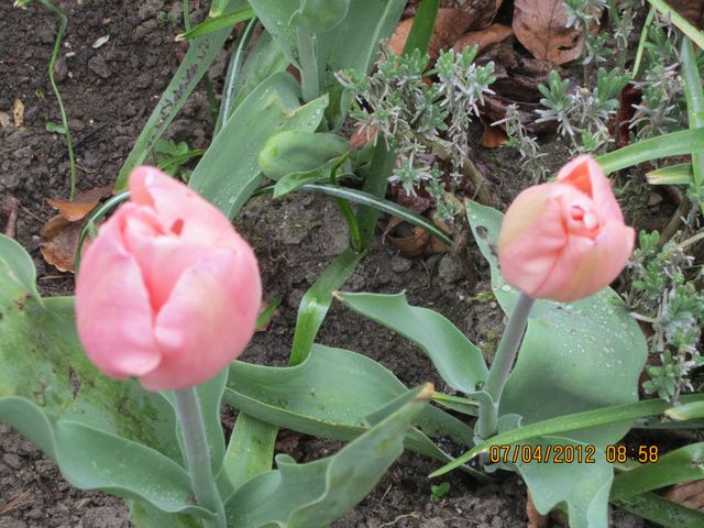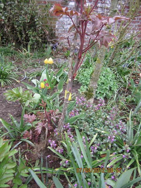 Oui, oui on les voit maintenant j'aime bien tes tulipes roses bonbons. Oui la clématite à souffert mais on voit déjà des repousses vertes; elle va s'en remettre et peut-être même être plus belle encore.
