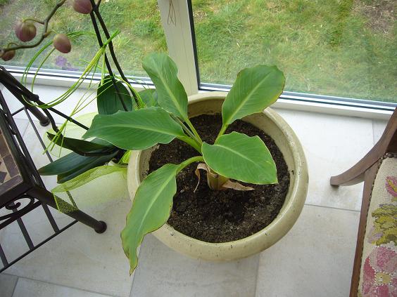 il y a 3 semaines, j'ai reçu un bébé musella lasiocarpa (bananier lotus d'or) en cadeau d'une société de vpc. Il est arrivé sous forme de petit bananier coupé à 20 cm du pot, ce qui était prévu. Actuellement, il est dans ma véranda (lumière +++ et température entre 24° quand il y a beaucoup de soleil et 17 ° la nuit quand le chauffage est mis en veille, ça semble convenir très bien à mes autres plantes, orchidées, bougainvillier et hibiscus). Je compte le mettre dans le jardin quand il sera plus grand.