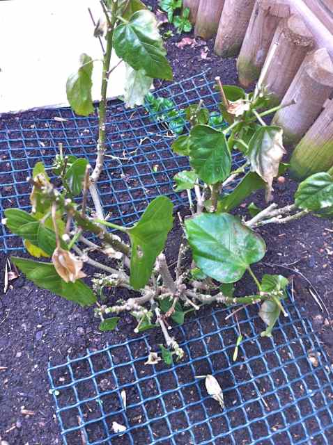 Je vous montre mon hibiscus planté en terre il y a peu, que me conseillez vous pour le faire repartir ?