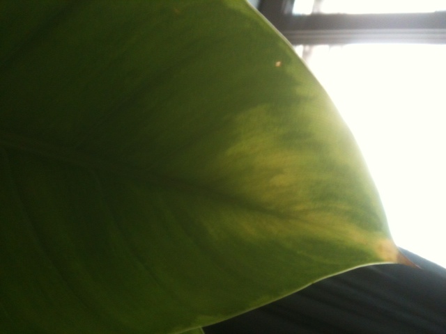 surement un problème d arrosage ( excès d eau), vu la couleur de la feuille et la pointe de celle ci qui est marron.