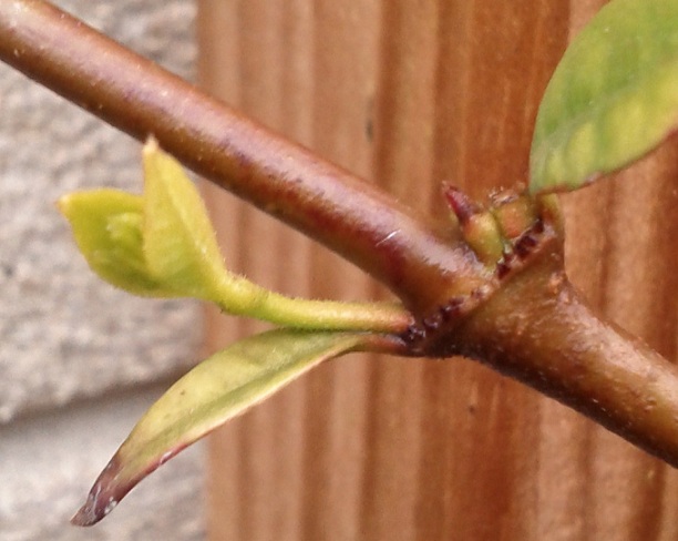 J'ai remarqué que mon jasmin démarrait poussivement cette année. En y regardant mieux j'ai noté que la plupart des jeunes pousses mourraient et que se développaient des sortes de petites pointes sombres et dures tout autour des bourgeons (voir photos).