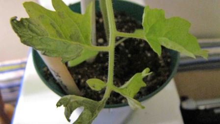 Mes plants de tomates sont rendu presqu'à 18 pouces de haut, donc j'ai mis un tuteur. Puisqu'il ne fait pas encore assez chaud pour les acclimater dehors, je dois attendre.