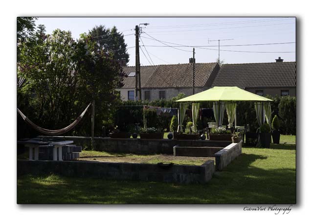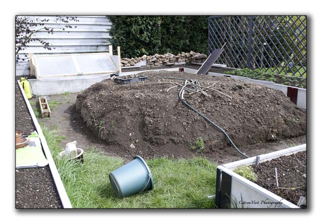 Alors avant c'était une grande pelouse, avec au centre un carré en bloc béton, vestige d'une structure qui protéger une piscine hors sol, j'ai donc décider d'en faire un potager.