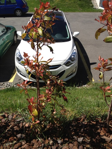 Le paysagiste a planté notre haie en octobre 2009, des photinias de petite taille.