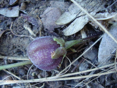 Elle pousse en touffe isolée, racine fasciculée, il y avait peut-être un fin rhizome, mais le plus étrange c’est ce qui ressemble à un fruit de moins d’un cm de diamètre au pédoncule partant directement de la base et mesurant 5 cm environ.