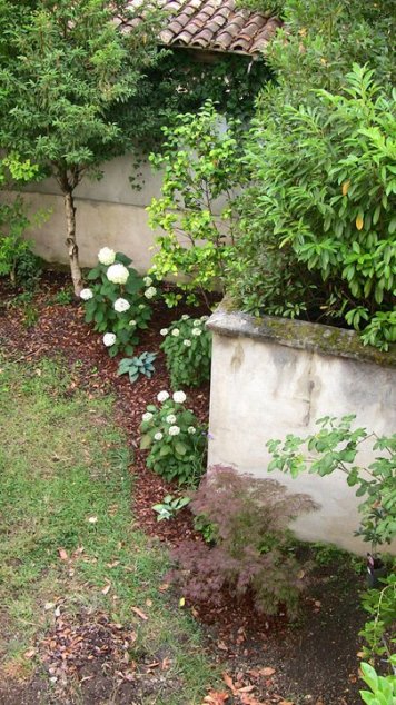 Cornouiller, tu as raison, les hortensias Annabelle ont énormément grossi (je n'aurais pas cru qu'ils prendraient une telle ampleur !). Mais apparemment, j'ai relativement bien respecté les distances de plantation : ils ne touchent pas encore le mur !
