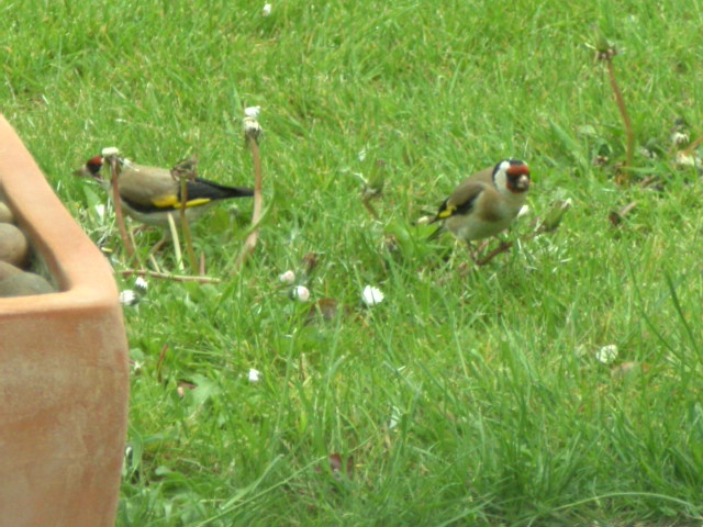 Je laisse toujours au fond de mon jardin, une petite partie "friche", beaucoup d'oiseaux, dont les chardonnerets affectionnent tout particulièrement cet endroit, car il y trouvent leurs graminées préférées et quelques insectes