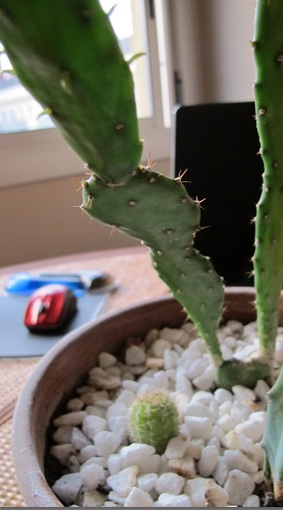 Ta plante qui a poussé très vite est un Opuntia. Il a filé comme ça parce qu'il manque de lumière.
