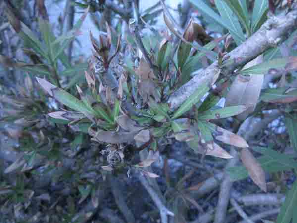 il semble que ce soit un laurier fleur (photo d ensemble ? ) et au vu de l hiver et du froid qu il y a eu dans notre region, je pense qu il a eu froid ;il y en a beaucoup ici qui sont comme le tien