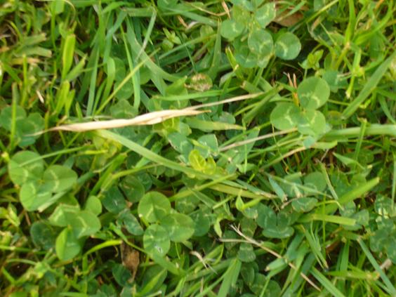 J'ai cependant une certaine inquiétude vis-à-vis du trèfle car je trouve qu'il a un comportement très dominateur et les touffes semblent s'élargir à vitesse V grâce à sa capacité à envoyer des stolons dans tous les sens et à s'enraciner très vite. Aux quelques endroits où je l'ai enlevé manuellement afin de voir comment la cohabitation avec les autres espèces se passait, j'ai vu qu'en fait, une fois le trèfle enlevé, il ne reste rien, l'herbe normale n'arrive pas à pousser, le trèfle recouvre tout et ses tiges horizontales très serrées ne laissent aucun espace pour les autres plantes