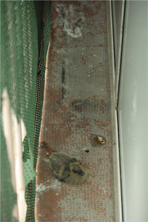 ah , zut , pauvre petiot , il est mort donc ? je suis désolée , en plus ça a l'air inaccessible ce coin de ton balcon , dommage mais hélas c'est la nature , le plus faible ou celui qui n'a pas de chance est condamné , désolée pour toi