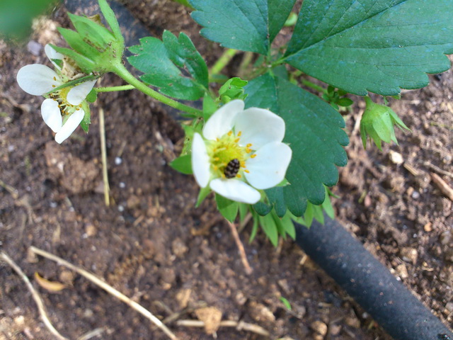 Je trouve des insectes comme ceux de la photo ci-dessous dans beaucoup de fleur de mes fraisiers, de quoi s'agit il, j'ai beau chercher je trouve pas ?