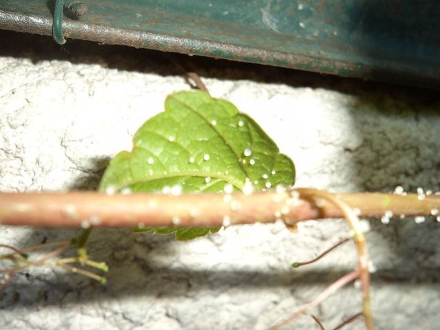 Ma vigne vierge est constellée de petits points blancs, que je suppose être des œufs.