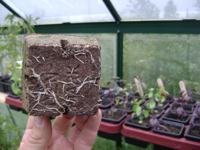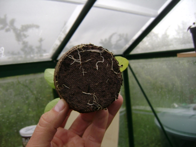 Voici un photographié, on voit bien ici que les racines transpercent le pot en tourbe :
