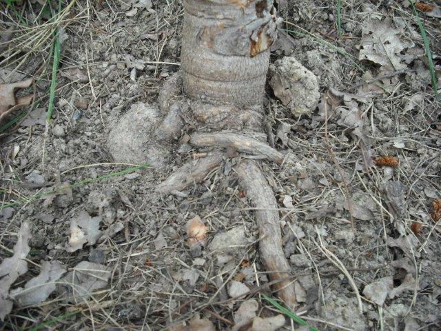 En plus de ces racines évidentes, la petite motte a gauche du pied n'est pas de la terre mais bien une racine aussi, c'est assez étonnant la forme qu'elle a pris.