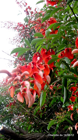 les Erythrina crista galli aime le soleil chez toi elle doit fleurir peut être est t'elle encore jeune :wink: ou alors elle n'a pas suffisement de soleil elles vive à l'orig. dans les forêts et bosquets mais sur des pentes dégagées dans les régions tropicales , il leur faut de la chaleur pour fleurir éviter aussi l'engrais si elle fait beaucoup de feuilles ça peut être au détriment des fleurs ce n'est pas une plante capricieuse mais il faut dans nos régions la mettre à une expo. bien soleil ce qui paraît logique vu ses orig. à Madère se sont des arbres plantés dans des endroits exposés plein sud :wink: